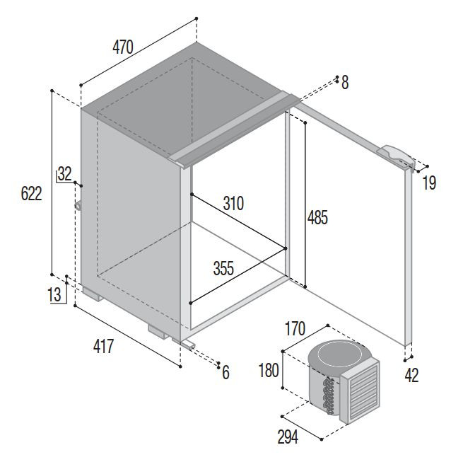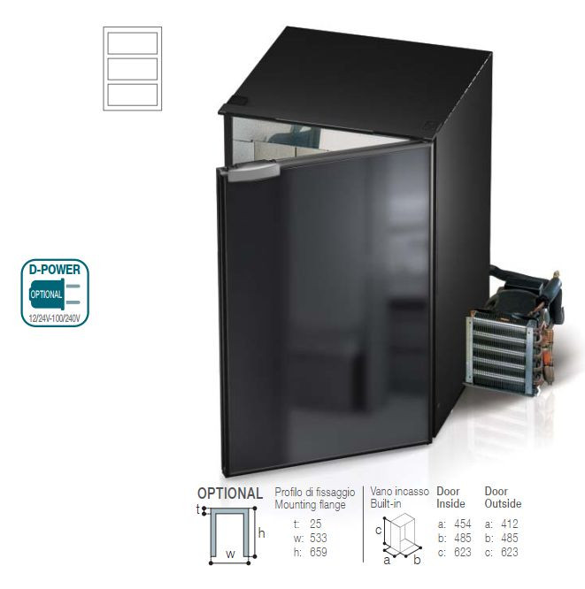 Mrazák byl navržen speciálně pro použití na lodích a ve všech náročných mobilních aplikacích. Nerezový interiér je uzpůsobem pro uchování potravin při při teplotách až -18°C. Je dodáván s externím kompresorem, vnitřní prostor tak není ničím narušen, navíc jej lze umístit do lépe větraného místa.