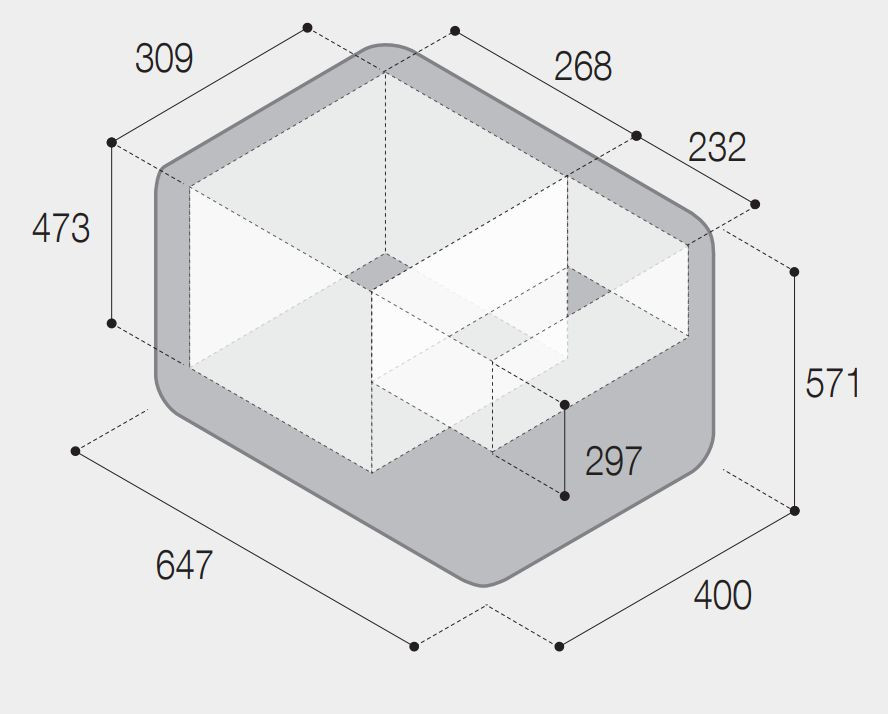 Vnější rozměry v/š/h: 571 x 647 x 400 mm