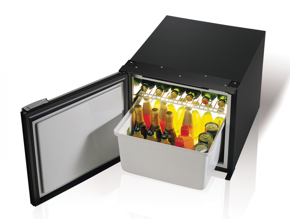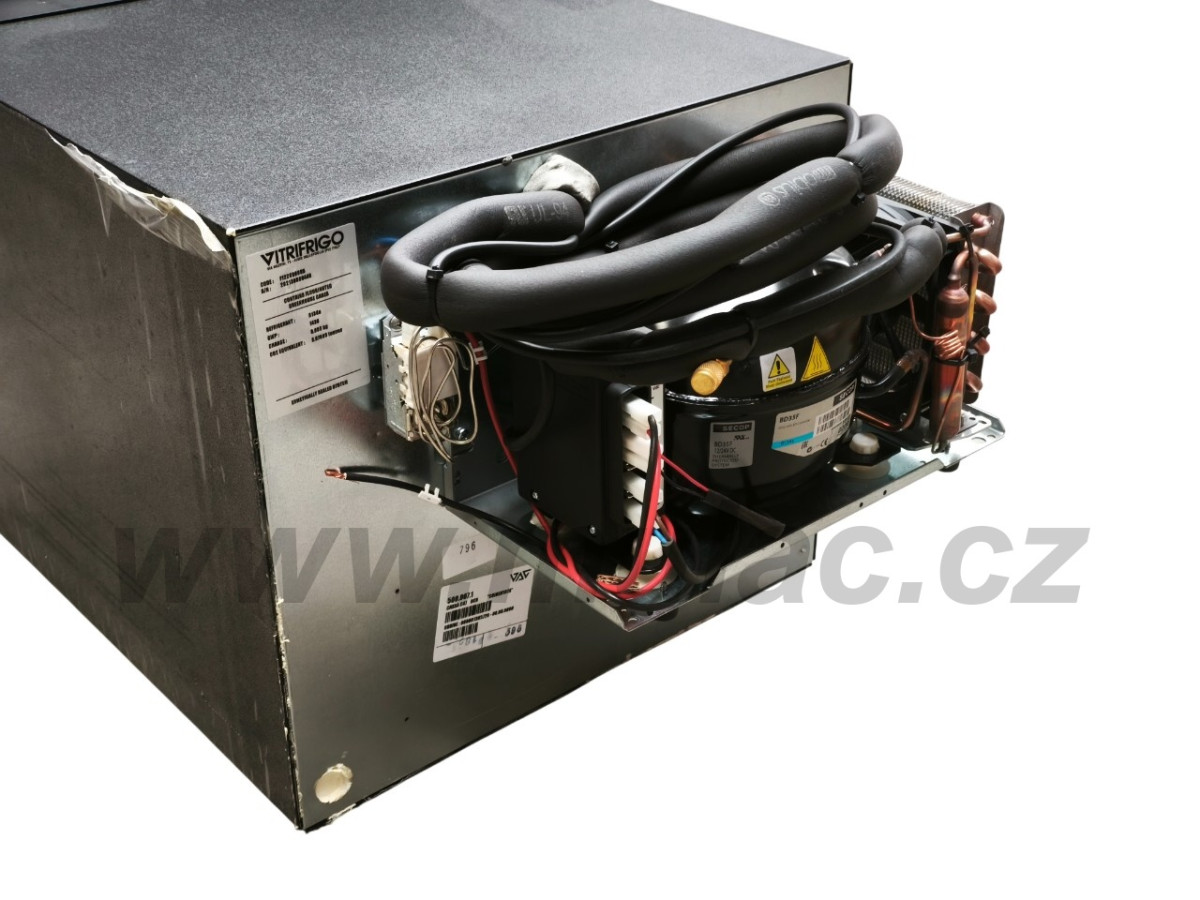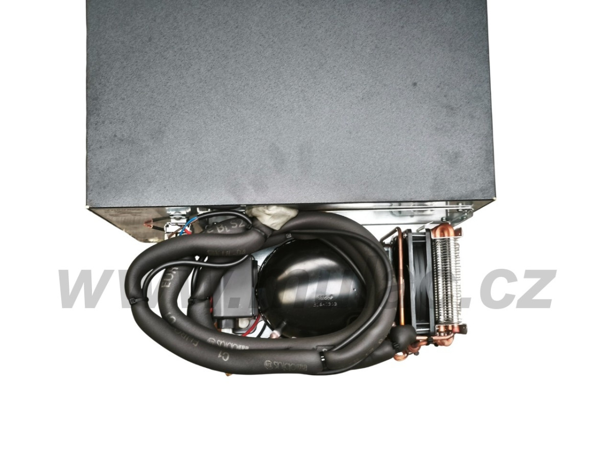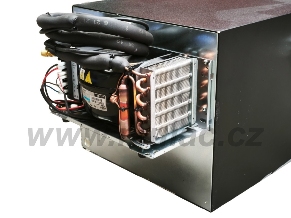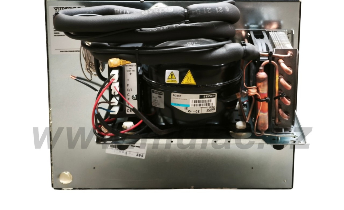 V lednici je použit hermeticky uzavřený, osvědčený, kompresor SECOP (dříve značka Danfoss) BD35F. Jeho součástí je automatická napájecí elektronika SECOP 12/24V s integrovanou ochranou proti vybití baterie.