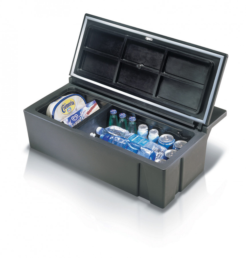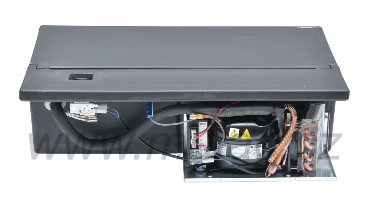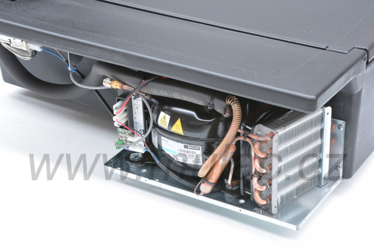 V lednici je použit hermeticky uzavřený, osvědčený, kompresor SECOP (dříve značka Danfoss) BD35F. Jeho součástí je automatická napájecí elektronika SECOP 12/24V s integrovanou ochranou proti vybití baterie.