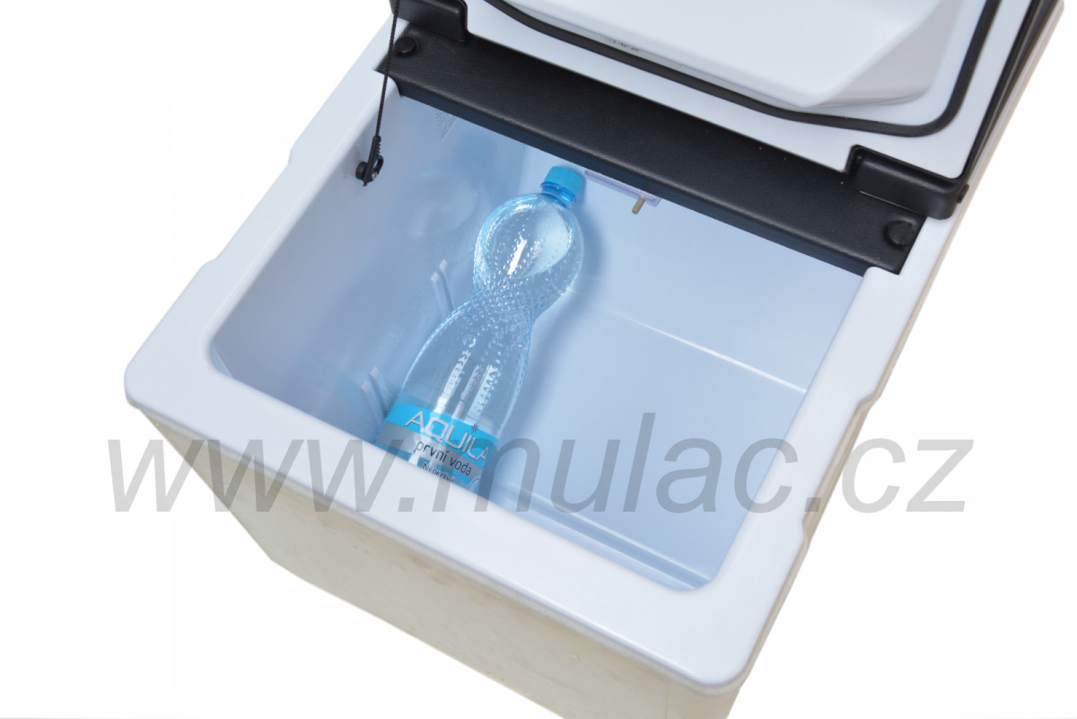 Teplota v chladničce se nastavuje mechanickým otočným termostatem. O chlazení se stará osvědčený kompresor SECOP BD1,4F s napájecí elektronikou 12/24V. Součástí je i zabudovaná ochrana proti hlubokému vybití akumulátoru.