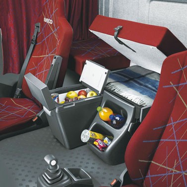 Kompresorová jednotka s výparníkem (model SP737) pro Iveco Stralis. Pomocí této chladící jednotky snadno změníte zásuvku pod lůžkem na chladničku, tak jak byla původně navržena přímo výrobcem. Jednotku pohání hermeticky uzavřený kompresor SECOP BD35F s řídící elektronikou SECOP. Kompresor je ochráněn automatickým vypnutím při sklopení kabiny tahače. Výparník je hliníkový, nehrozí jeho koroze.