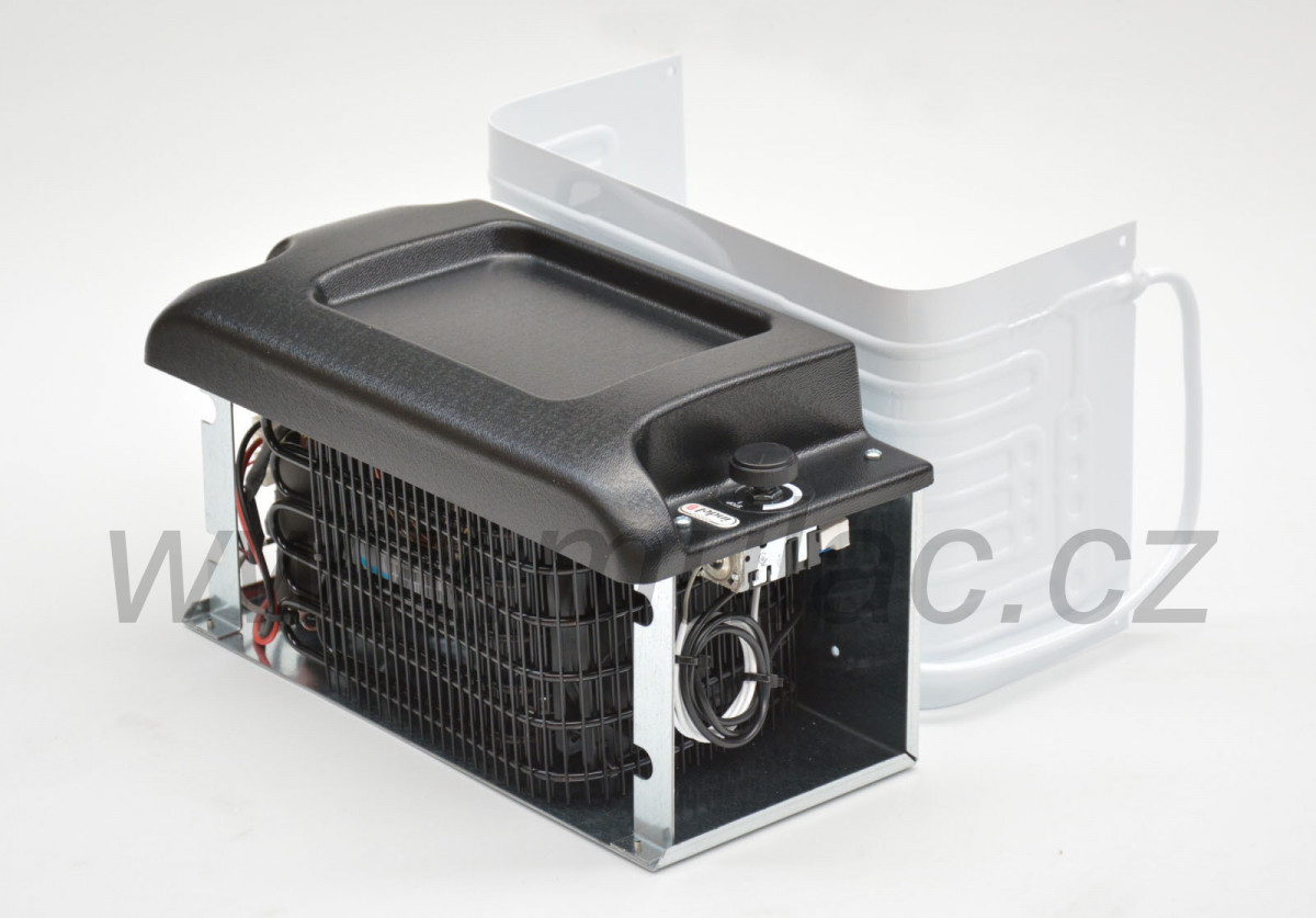 Kompresorová jednotka s výparníkem pro MAN TGA / TGX. Pomocí této chladící jednotky snadno změníte zásuvku pod lůžkem na chladničku, tak jak byla původně navržena přímo výrobcem. Jednotka je poháněna osvědčeným kompresorem SECOP (Danfoss) BD35F, napájecí elektronika je SECOP.
