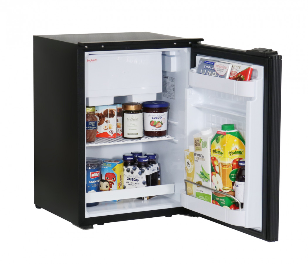 Lednička o objemu 42 litrů s lehoučkým mikro kompresorem SECOP BF1,4F 12/24V umístěným vzadu, kompresor lze odejmout a umístit až ca 1,5 metru daleko od chladničky, tím se docílilo lepšího, využitelnějšího vnitřního objemu.
