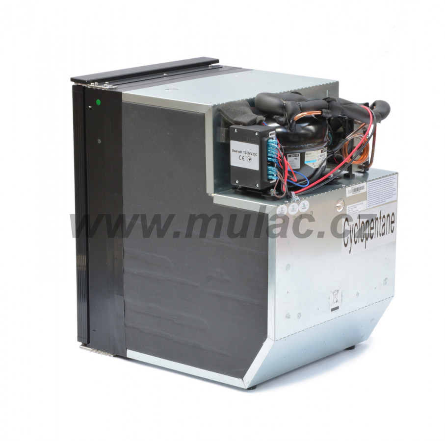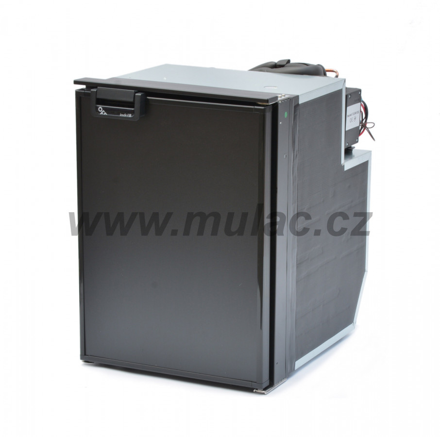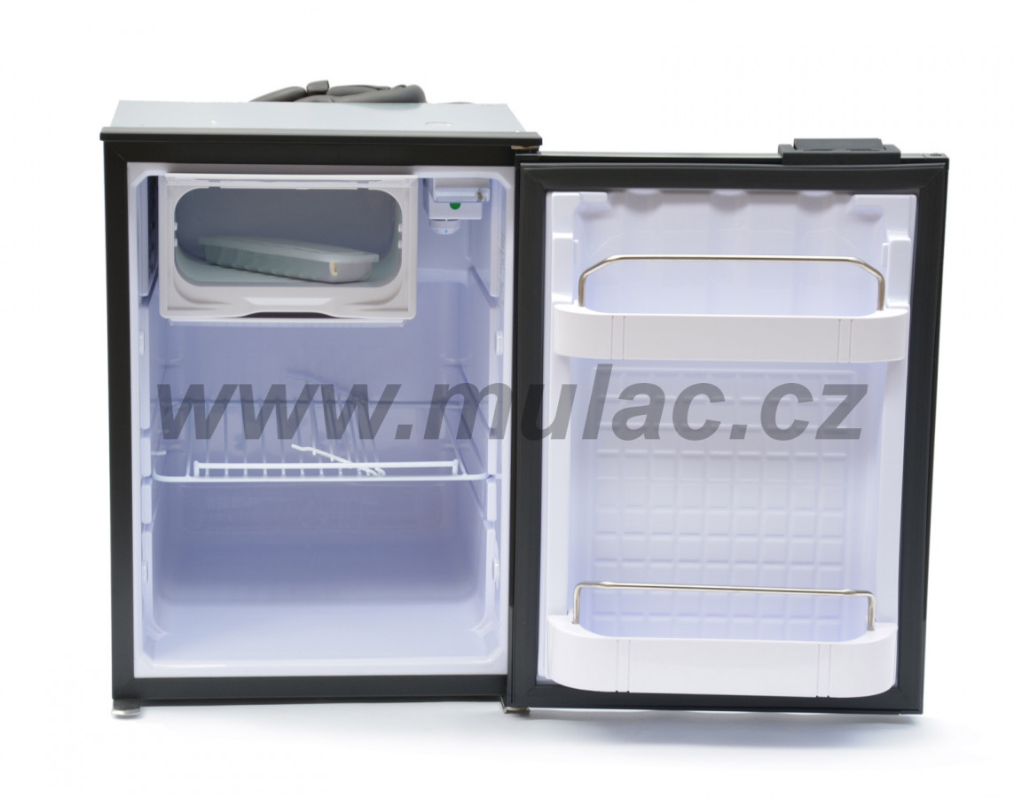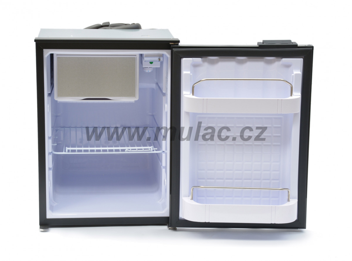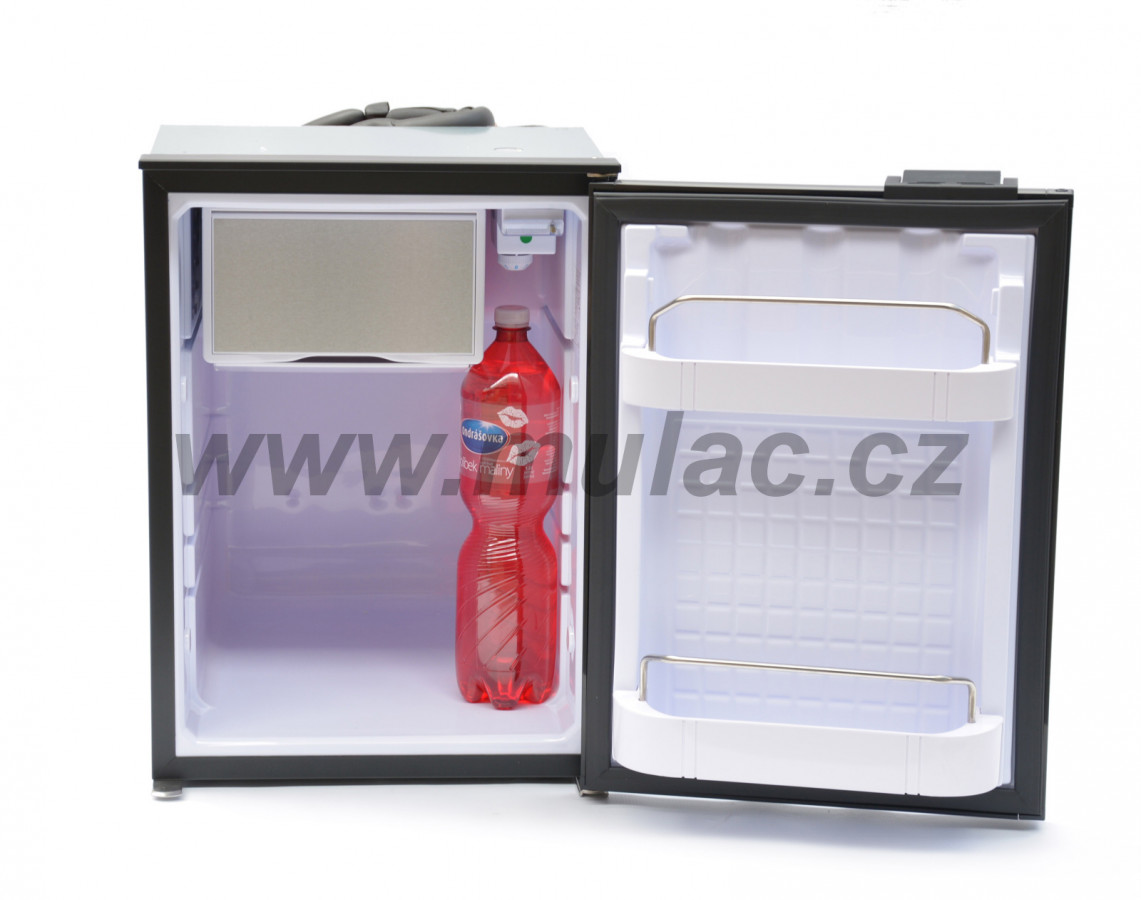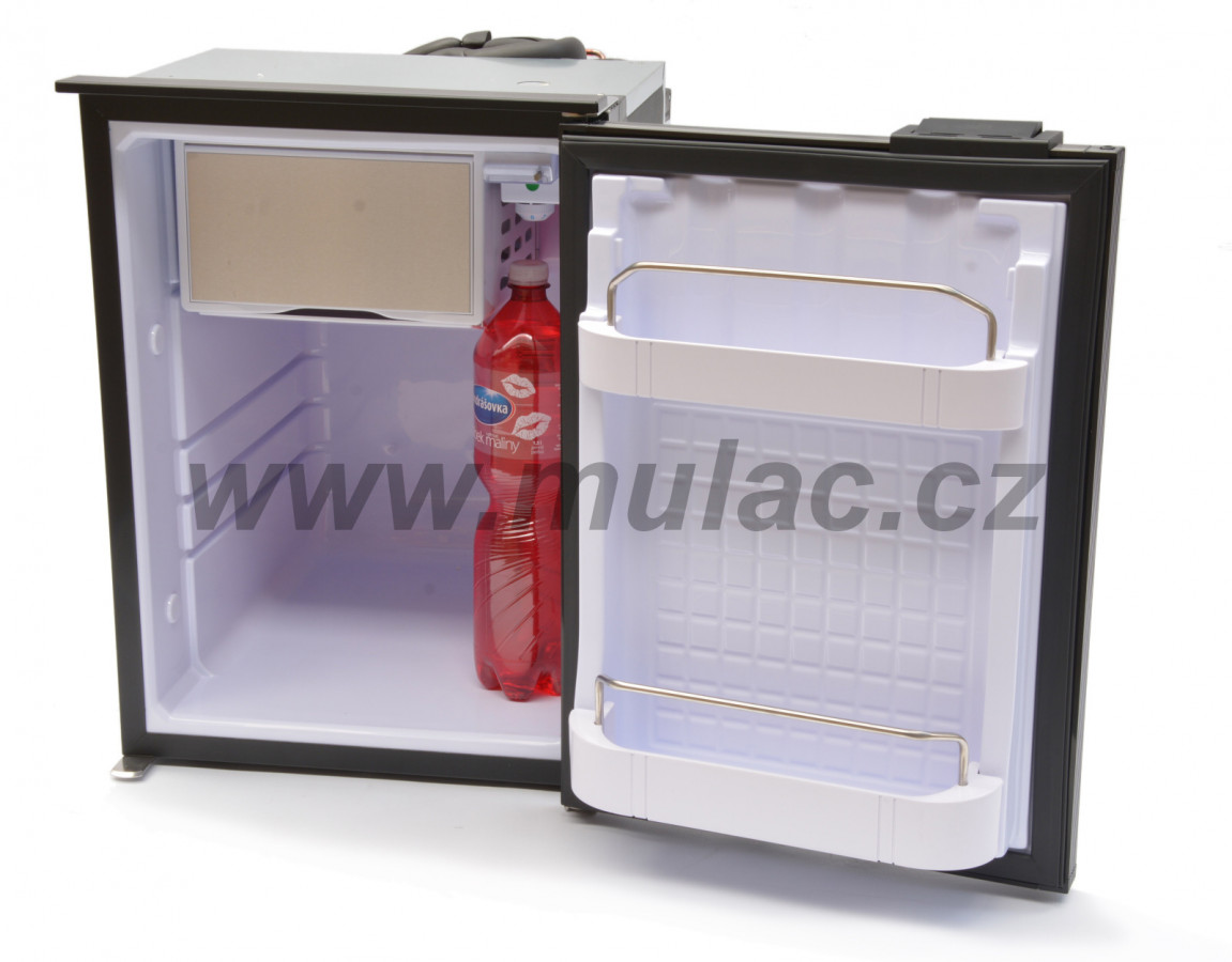 Lednička o objemu 49 litrů s kompresorem SECOP BD35F 12/24V umístěným vzadu nahoře. Do chladničky lze umístit PET na stojato.