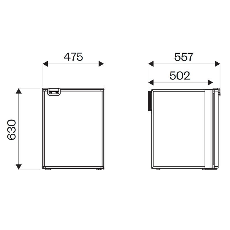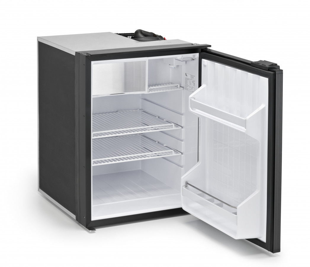 Dveře mají magnetické gumové těsnění a směr otevírání lze změnit. Bezespárový vnitřní korpus z tvrdého plastu je vhodný pro uchovávání potravin. Všechny rohy jsou zaoblené, aby se usnadnilo jejich lepší čištění. To je obzvlášť důležité, protože palubní lednice se často nepoužívají delší dobu.
