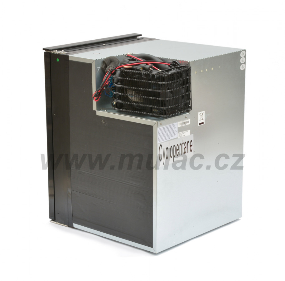 Lednička o objemu 85 litrů s kompresorem SECOP 12/24V umístěným v rohu, tím se docílilo lepšího - využitelnějšího vnitřního objemu.