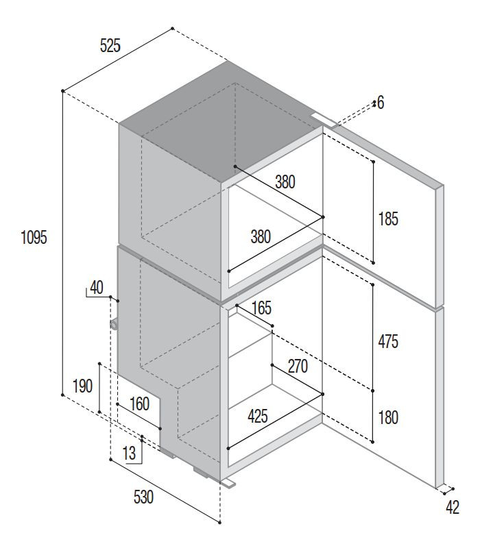 Rozměry vnější (š / h / v mm): 525 / 530 / 1095