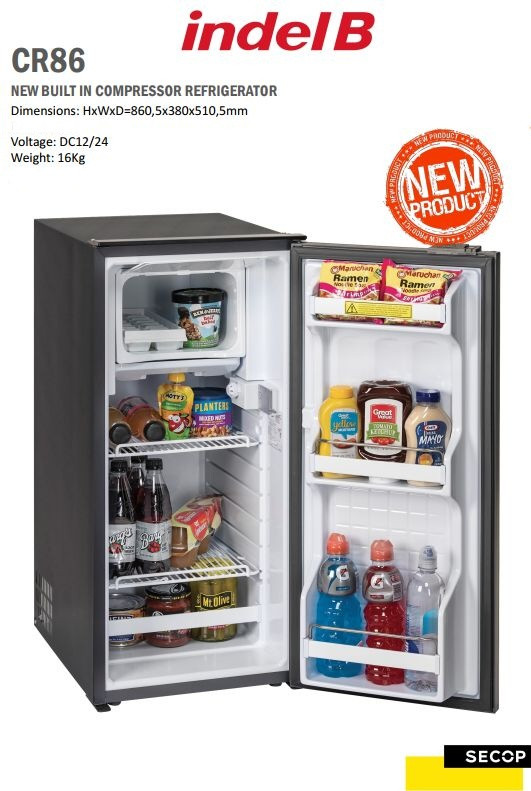 Chladnička Cruise 86 je vybavena hermeticky uzavřený kompresorem SECOP BD1,4F chlazeným vzduchem s napájecí elektronikou SECOP 12/24 Voltů, mrazáčkem o objemu ca 10 litrů, mechanickým termostatem, vnitřním osvětlením, dveřmi s bezpečnostním zámkem a magnetickým gumovým těsněním. Lednice obsahuje dvě drátěné poličky, jedna částečně otevírací, aby skrze ní šly postavit vyšší předměty. Bezespárový vnitřní korpus je z tvrdého plastu, všechny rohy jsou zaoblené, aby se usnadnilo jejich čištění. To je obzvlášť důležité, protože palubní lednice se často nepoužívají delší dobu.