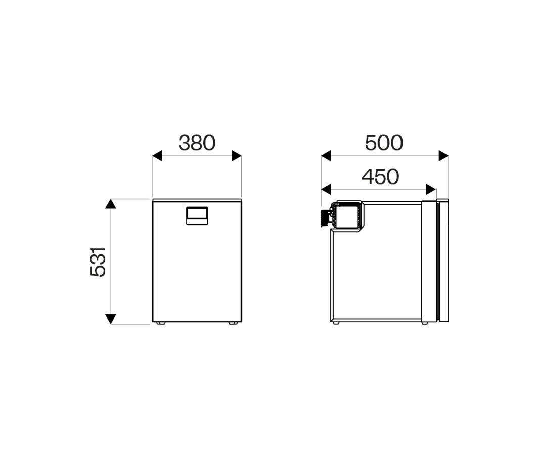 Její kompaktní rozměry: šířka 380 mm, výška 531 mm a hloubka 450 mm, umožňují snadnou zástavbu do malých interiérů obytných dodávek, minikaravanů a například nástaveb na OFF road pickupy.