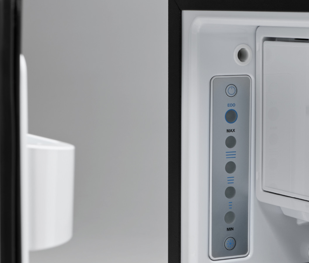 Nastavení teploty je možné ve čtyřech stupních membránovým ovladačem. Jím můžete zvolit i tzv. ECO funkci, která rozpoznává, kdy je dostatek napájecí energie, například za jízdy, nebo po připojení nabíječky k napájecí baterii. V takovém případě chladnička zvýší svůj chladící výkon: zvýší otáčky kompresoru na maximální a bude chladit na nižší, než je nastavená teplota. Jakmile napájecí napětí klesne, motor vozu byl vypnut, či byl odpojen nabíječ, využije se dříve naakumulovaná energie k nižší spotřebě chladničky.