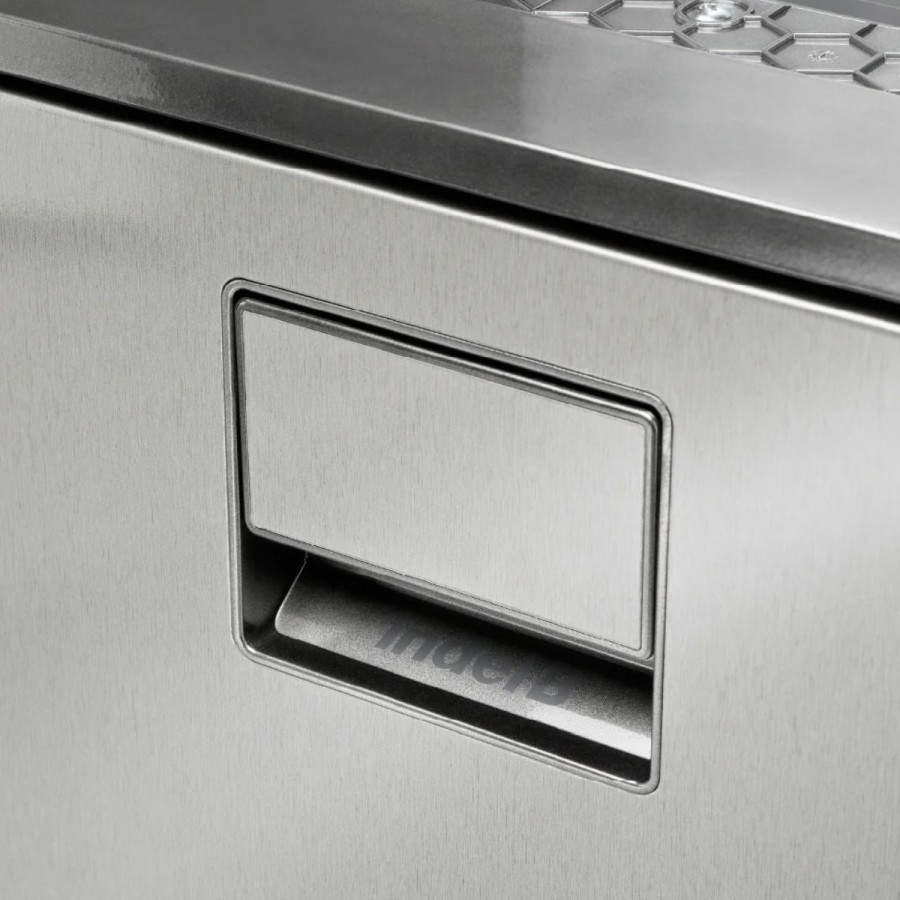 Chladnička Elite 49 je velké řešení pro malé prostory. Tento model je druhou nejmenší vestavnou kompresorovou chladničkou vyvinutou pro "van life". Navzdory svým kompaktním rozměrům je vybavena mrazicím prostorem a pojme lahve ve vertikální i horizontální poloze. Drátěná police je důmyslě otevírací, aby skrz ni šly prostrčit i vyšší předměty.  Dveře s efektem nerezové oceli ošetřené speciální antitouch úpravou usnadňují čištění, smysl otevírání dveří chladničky lze změnit na pravý nebo levý