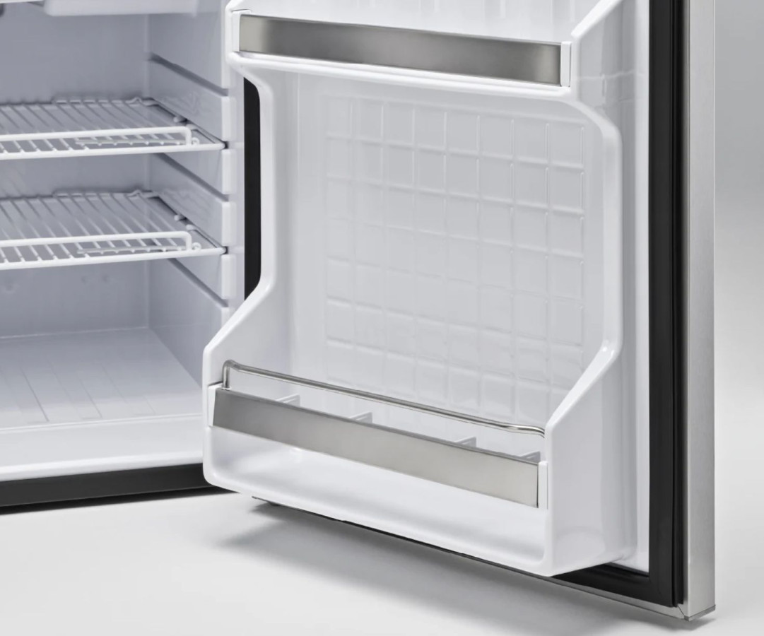 Chladnička je vybavena mrazicím prostorem a pojme lahve ve vertikální i horizontální poloze. Drátěné police jsou důmyslě otevírací, aby skrz ně šly prostrčit i vyšší předměty.  Dveře s efektem nerezové oceli ošetřené speciální antitouch úpravou usnadňují čištění, smysl otevírání dveří chladničky lze změnit na pravý nebo levý