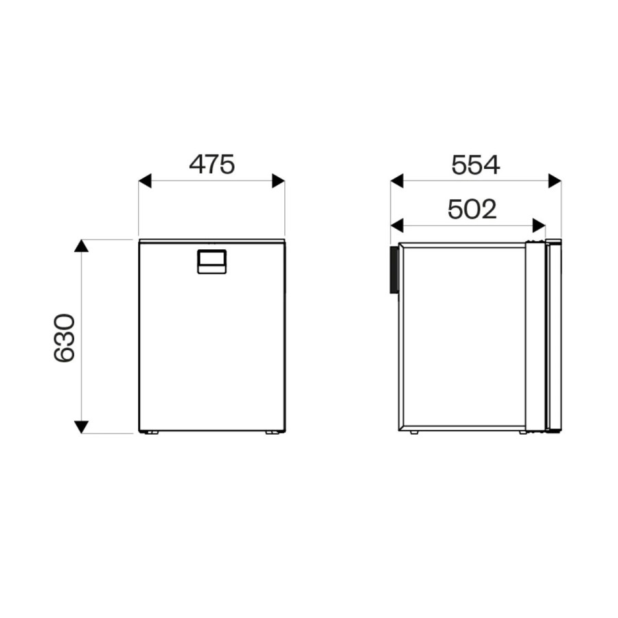 Rozměry (v/š/h) mm: 630 / 475 / 554, (minimální zástavbová hloubka pro tzv. předsazenou montáž: 502 mm - bez kompresoru)