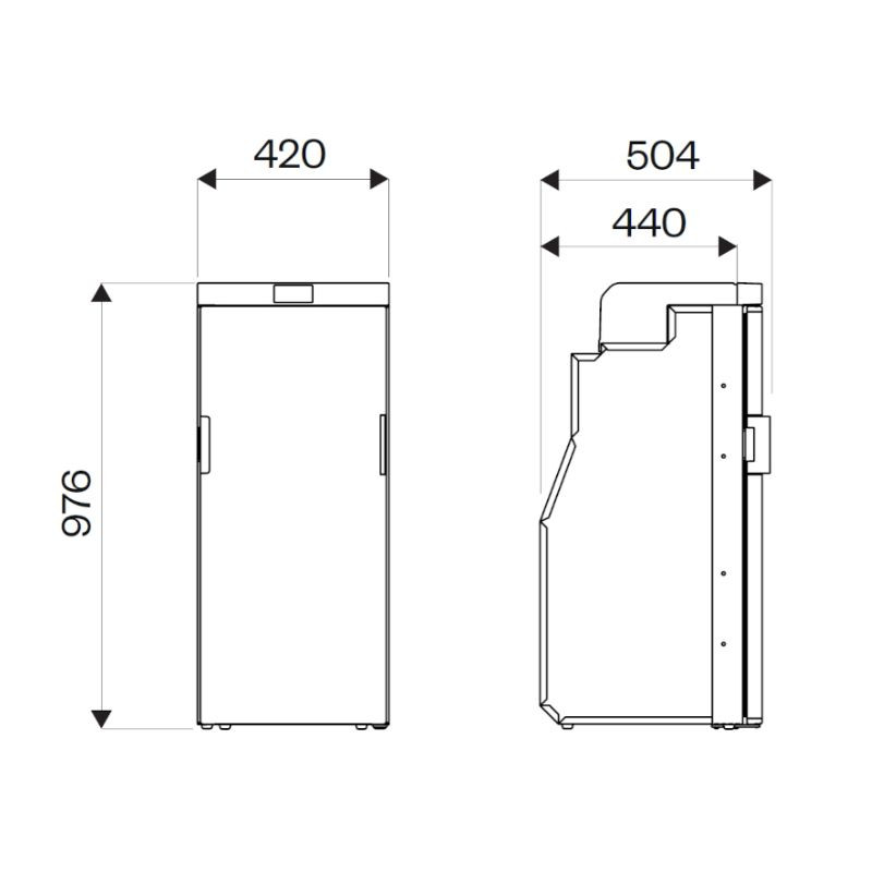 Rozměry vnější (v/š/h) mm: 976 / 420 / 490 (minimální zástavbová hloubka pro tzv. předsazenou montáž: 440 mm)