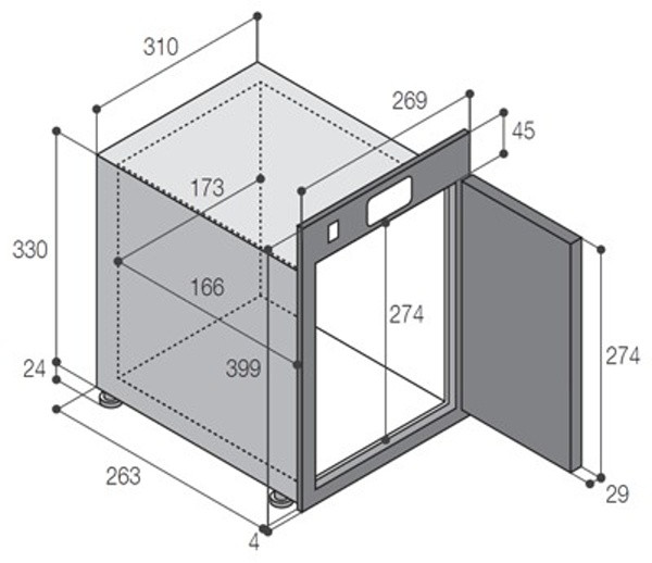 Vnější rozměry (š x h x v): 269/267/399 (+125 kompresorová jednotka) mm
