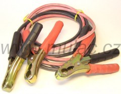Startovací kabely o délce 2,5m a průřezu měděného jádra 10mm², silikonem izolovaný, kleště ocelové snadno připojitelné na baterii. Spoje proletované.