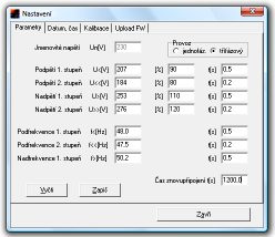 Ochrana UF300 b, které přes stykač připojuje FVE k síti.b (lze zvolit) a frekvenci, pro obě veličiny lze nastavit dvě sady mezí a ke každé čas vybavení. Nastavení se provádí pomocí PC, přes rozhraní USB (není součástí balení, možno zakoupit samostatně).