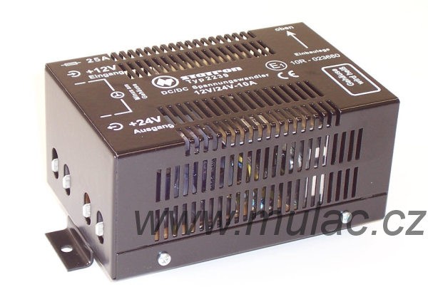 Vysocekvalitní německý měnič STATRON. Mění 12V na 24V (DC). Zařízení pro napájení zařízení na 24V v místech, kde je jen 12V baterie nebo jiný 12V zdroj. Nejširší uplatnění najde u řidičů kamionů a autobusů, kteří mají elektrické spotřebiče na 24V a chtějí je používat i ve svém osobním voze nebo na chatě s 12V baterií. Lze použít pro napájení spotřebičů do celkového příkonu 240W.