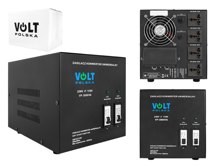 Měnič napětí z 230V AC na 110V AC, slouží zejména k napájení amerických spotřebičů, které jsou na 110V v EU, kde je napětí 230V.