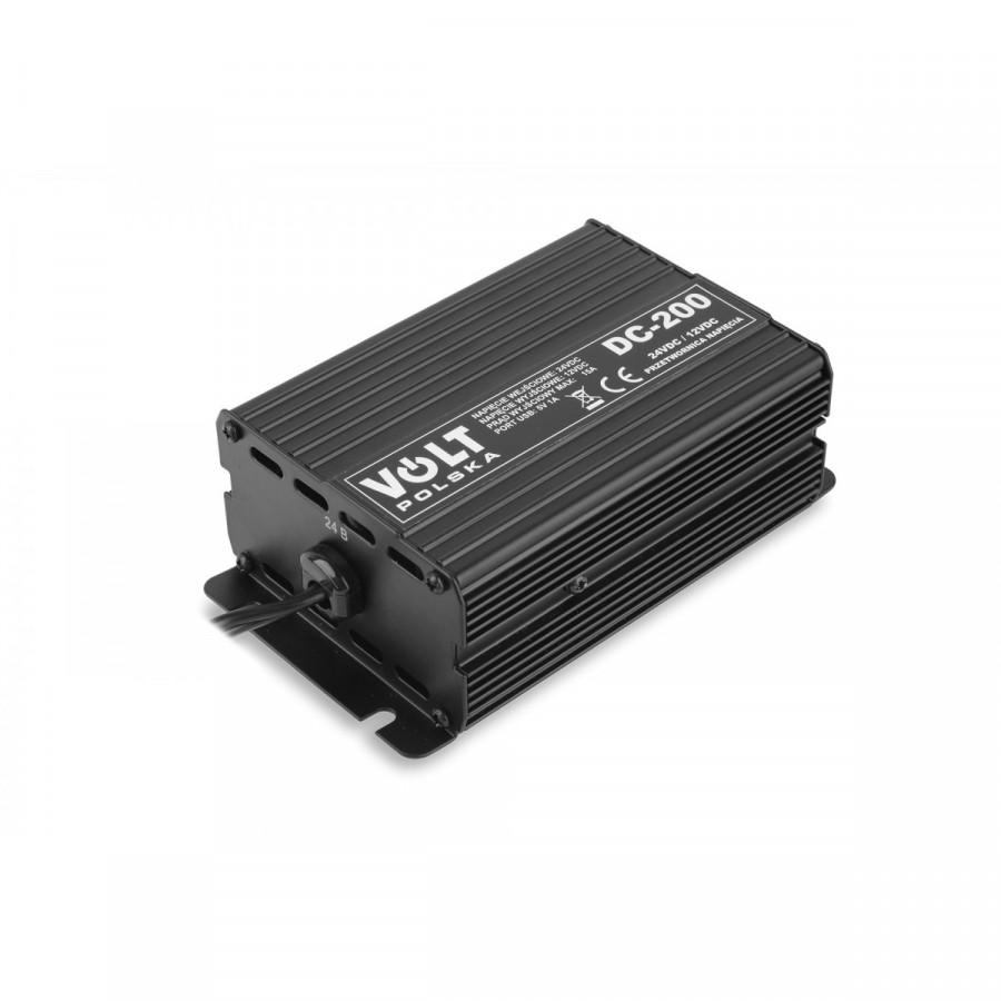 Měnič napětí DC-200 z 24V DC na 12V DC 200W 15A s USB a zásuvkou zapalovače je moderní zařízení s nízkým rušením určené ke snížení napětí instalací nákladních vozidel z 24 na 12V. Měnič má řadu přepěťových ochran, což je ideální pro napájení CB přijímačů, GPS, smartphonů, rádií, notebooků atd. V tomto modelu bylo provedeno několik vylepšení, díky kterým byla během provozu snížena teplota zařízení (aktivní chlazení).