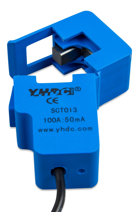 Transformátor proudu 100 A: 50 mA pro zařízení MultiPlus-II (GX) / Multi-Grid-II pro implementaci funkcí PowerControl a PowerAssist a pro optimizaci samostatné spotřeby se snímáním údajů externího proudu.