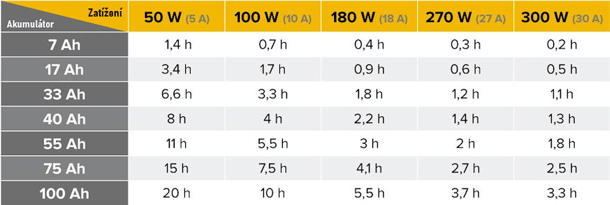 záložní zdroj (UPS) s baterií 120 Ah bude pracovat 2,5 hodiny.