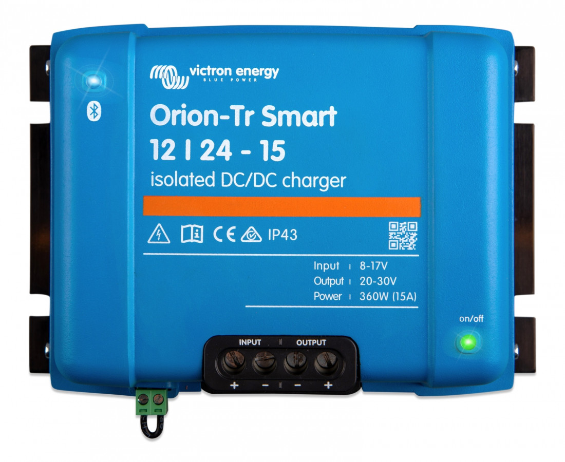 Orion-Tr Smart DC-DC nabíječ je profesionální DC/DC nabíječ (izolovaný měnič) s 3 fázovou adaptivní nabíjecí charaktreristikou, kterou lze plně uživatelsky nastavit pomocí vestavěného Bluetooth rozhraní (1). Zařízení lze také nastavit a používat jako napájecí zdroj s nastavitelným napětím.