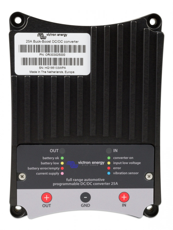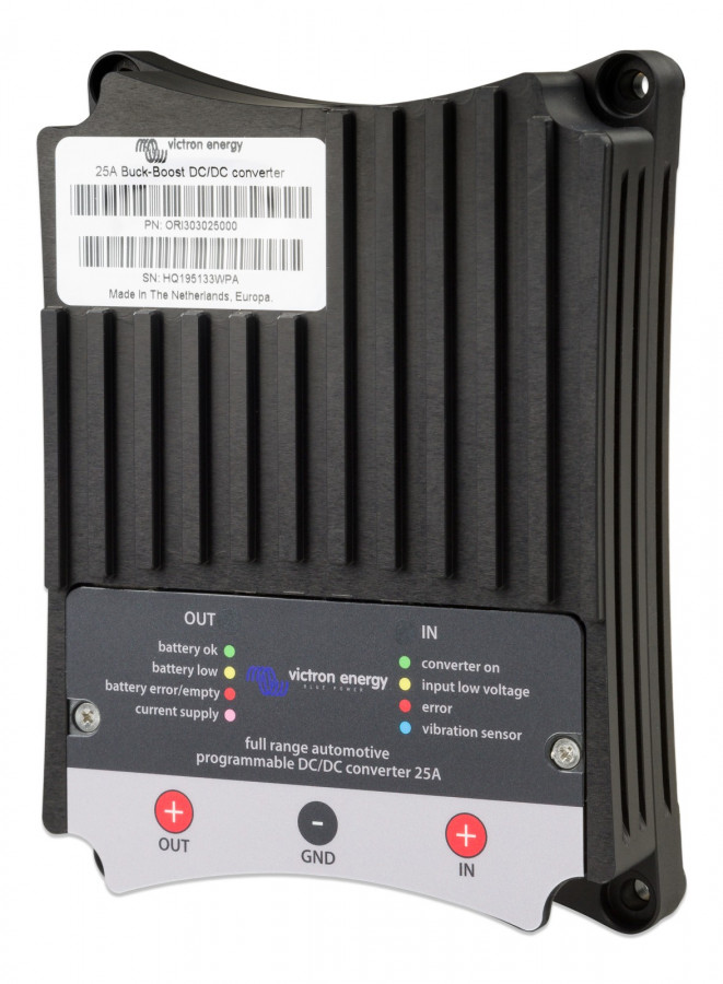 Měnič DC-DC Buck-Boost je DC-DC konvertor pro nabíjení servisní baterie 12V nebo 24V ve vozidlech s inteligentním alternátorem (rekuperační brzdění, motory Euro 5 a Euro 6). Konvertor nabíjí pomocnou/druhou/nástavbovou baterii předem nastaveným nabíjecím napětím, čímž eliminuje vysoké nabíjecí napětí některých vozidel (např. Mercedes: 15,4V) a nebo naopak příliš nízké nabíjecí napětí.