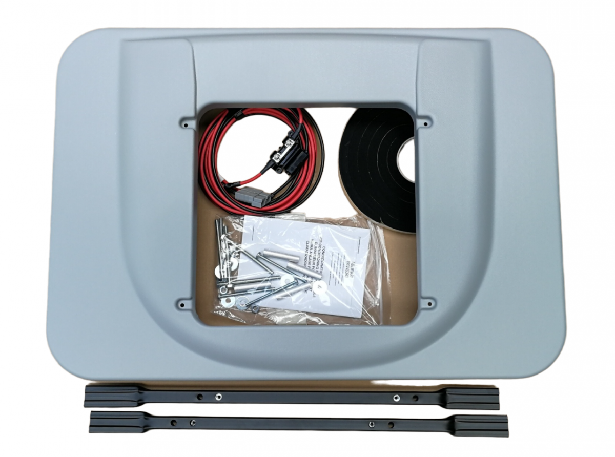 Montážní sada pro klimatizaci Indel B AIRCON 1600. Sada obsahuje vše potřebné pro instalaci klimatizace do střešního okna. Sada je použitelná pro většinu kabin kamionů mimo následující kabiny: Iveco Stralis AS CUBE Hi Way, Scania NEW R+S Normal cab, Highline cab, a MAN TGX XXL-XL-XLX+TGA, TGS, TGL TGM L/XL (pro tyto kabiny je notno objednat přesné sady s upevněním kovovou deskou).