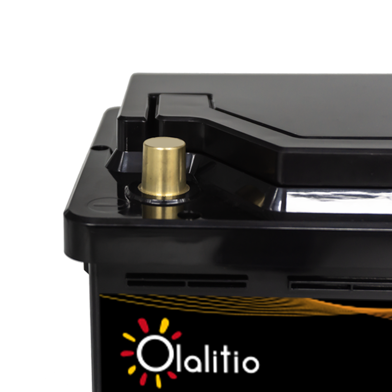LiFePO4 baterie Olalitio OLA-12-100-SLN3 Smart BMS 12,8V 100Ah. Obsahuje integrovaný bateriový management BMS pro řízení nabíjení a poskytování informací pomocí Bluetooth. Baterie s nízkou hmotnostím vysokou životností a malými rozměry (nádoba velikosti 74Ah baterie).