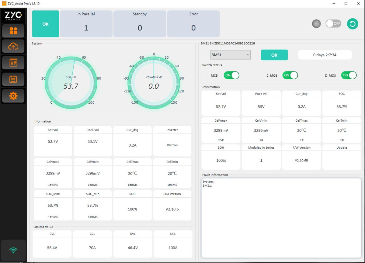SIMPO5000 jsou plně a jednoduše integrovatelné do systému Victron Energy pomocí BMS CAN komunikace. Jednotlivé komponenty systému Victron Energy si pak převezmou požadované parametry nabíjení a vybíjení automaticky sami. Pro datové připojení se systémem Victron Energy použijte kabel VE.CAN - CAN-BUS typ A. V nabídce máme tyto kabely 1,8m a 5m dlouhé. Update firmware baterie je možné provést vzdáleně z VRM portálu Victron Energy.