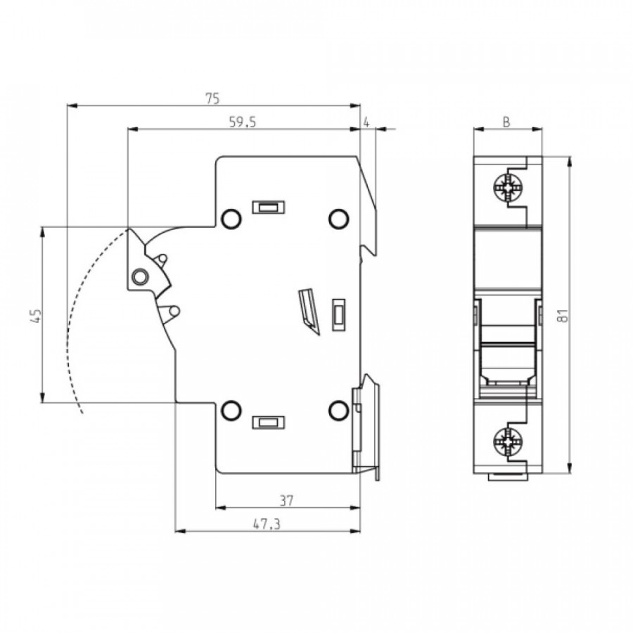 Při nadproudu se spálí pojistka vložená v odpínači. Po odstranění zkratu vložte do výklopného držáku náhradní pojistku a držák pojistky zavřete. Pojistkový spodek zajišťuje, že pojistkový článek není v kontaktu s krytem. Do pojistkového držáku EFH 10 / 14 lze namontovat celou řadu pojistkových vložek. Montáž na DIN lištu.