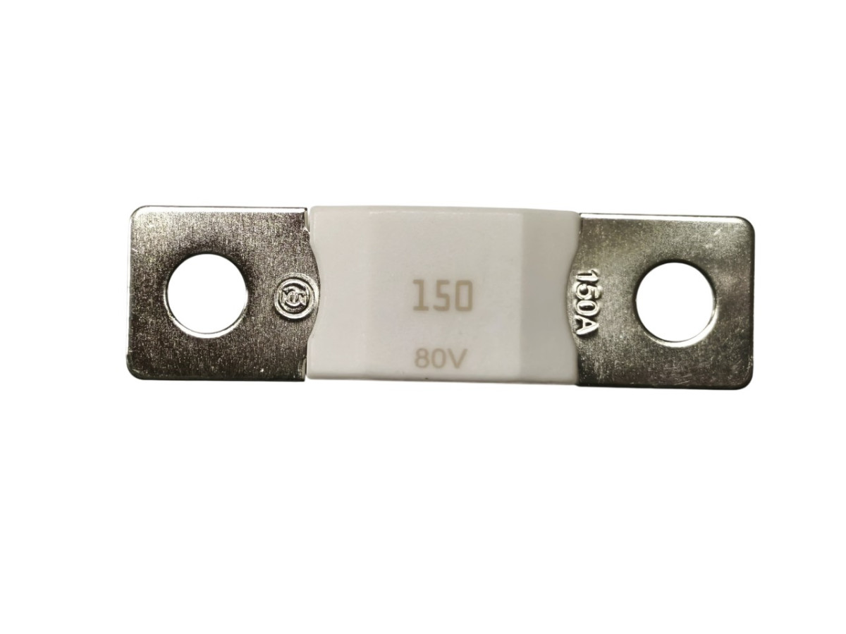 Tavná MEGA pojistka 150A / 80V pro 48V produkty. Keramické pouzdro těla pojistky pro větší bezpečnost.