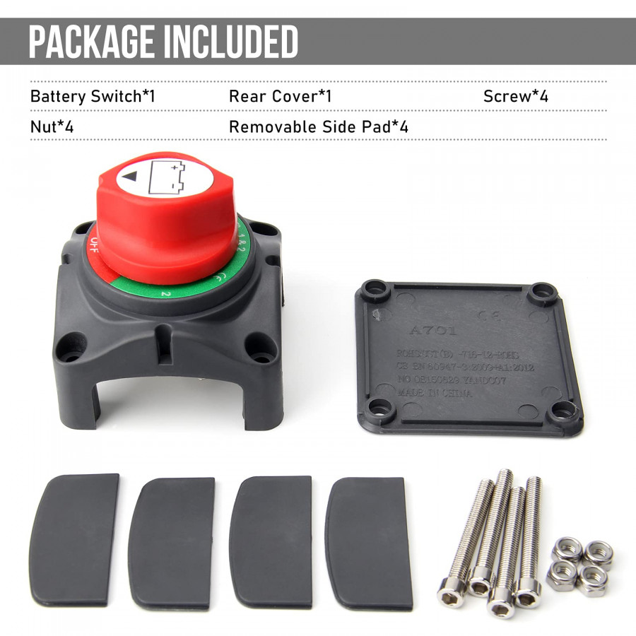 Bateriový odpojovač Battery Switch ON/OFF 200A je vhodný pro bateriové systémy do 48 V.