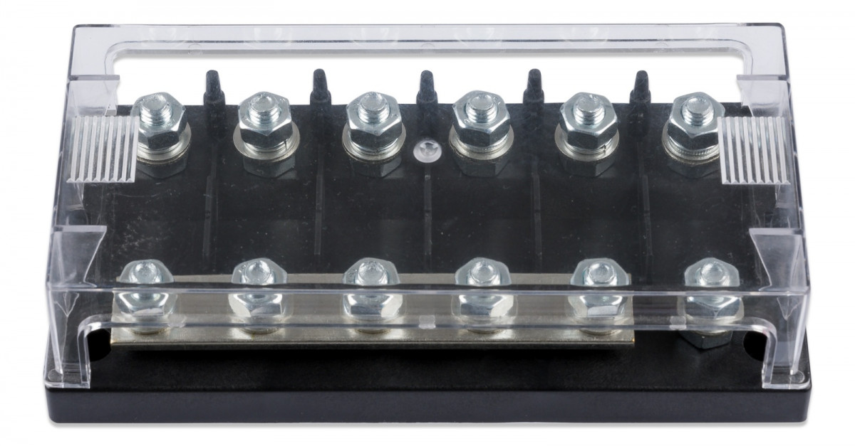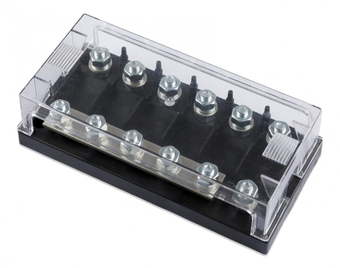 Držák pro 6ks MEGA pojistek s průhledným krytem a busbarem 250A 70V