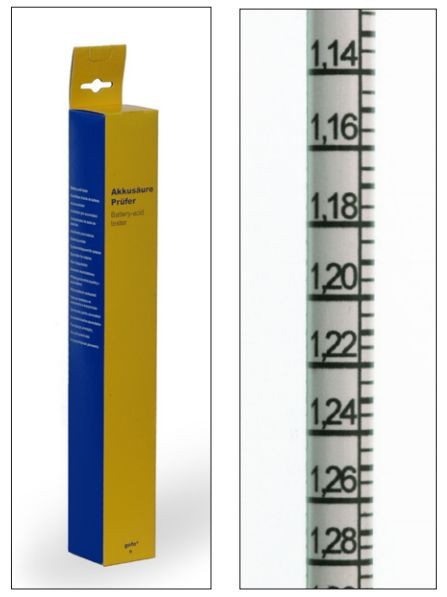 Přesný skleněný hustoměr pro profesionální užití zejména měření hustoty staničních baterií s vysokým nárokem na přesné odečtení hustoty.
