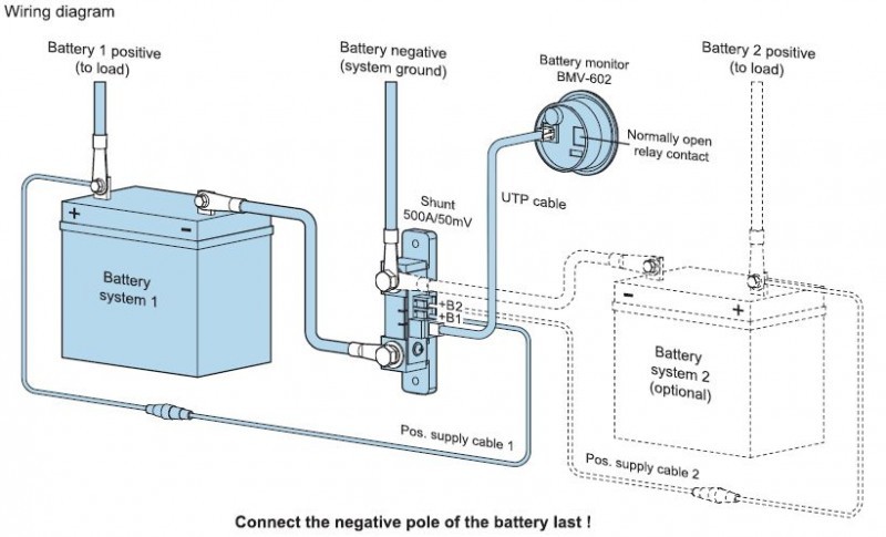 Sledovač stavu dvou baterií BMV 602S je nový vysoce přesný systém monitorování stavu baterie (9,5-95V 20-9999Ah) stejně jako model 600S navíc zvládá měření napětí na druhé baterii. Základní funkcí sledování stavu baterie je kalkulace spotřebovaného množství amperhodin a stavu nabití baterie /SOC- state of charge/. Spotřebované nebo dodané amperhodiny jsou počítané integrací nabíjecího nebo vybíjecího proudu baterie.