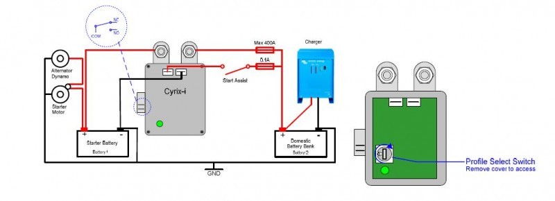 Aby se předešlo nenadálým situacím při montáži nebo je-li jedna baterie odpojena, Cyrix se nesepne, pokud jedna z baterií má nižší napětí než 2V (12V baterie), nebo 4V (24V baterie)